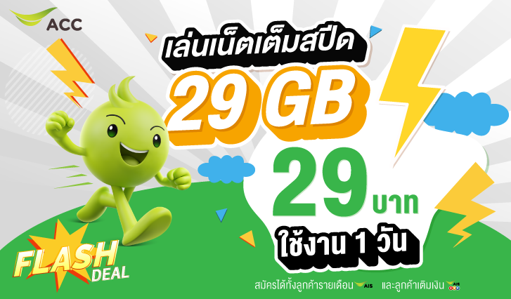 จำนวน 29 GB ราคา 29 บาท ใช้งานได้ 1 วัน