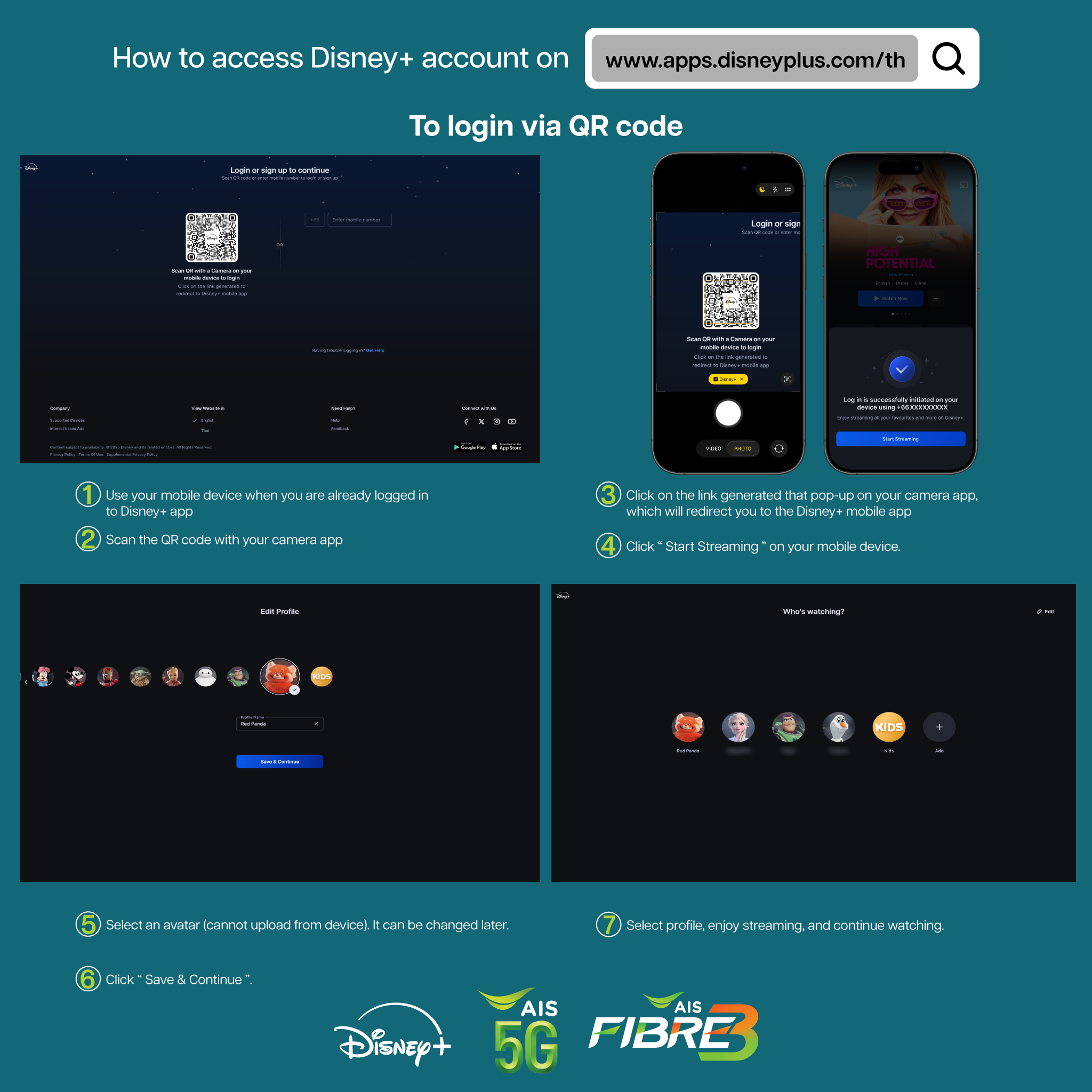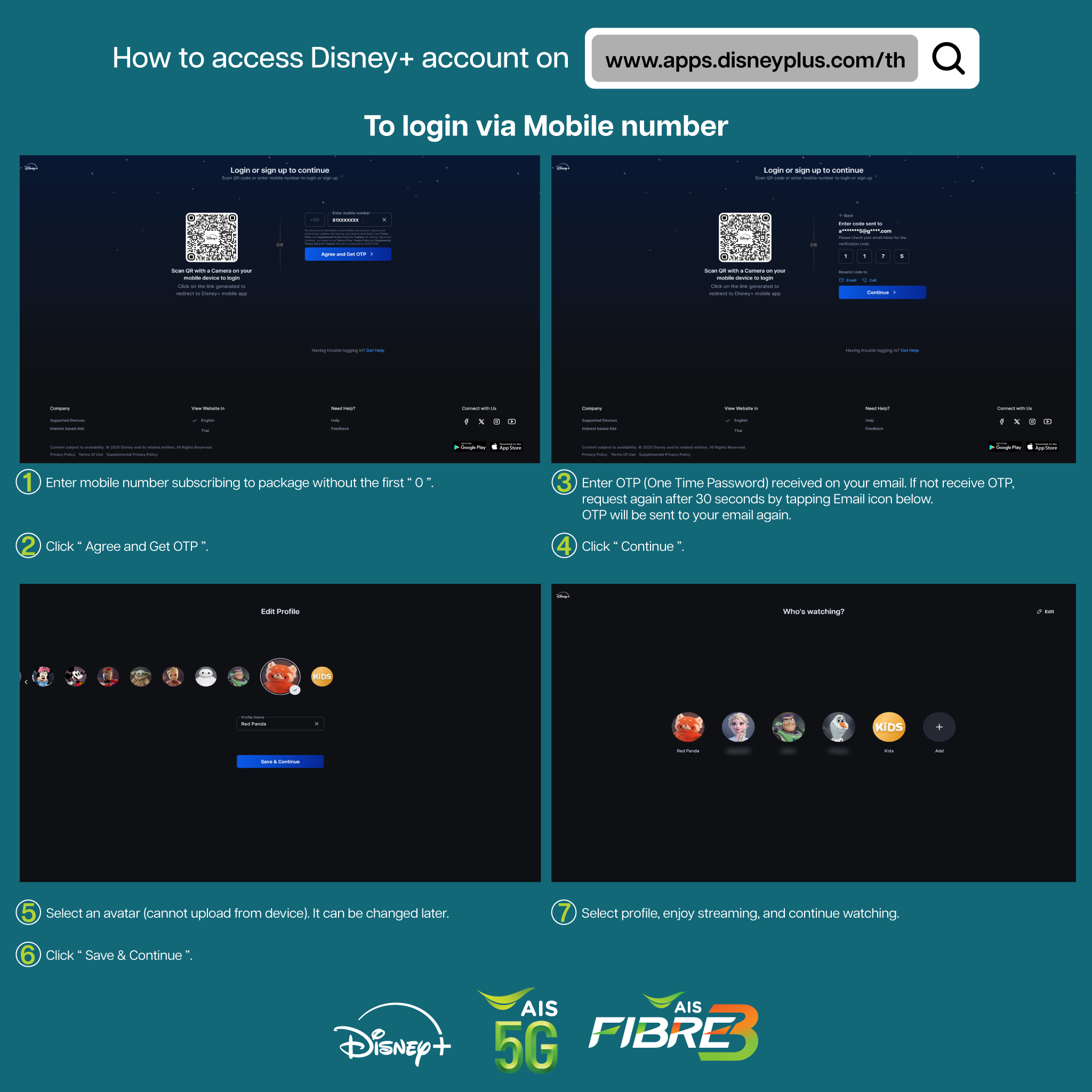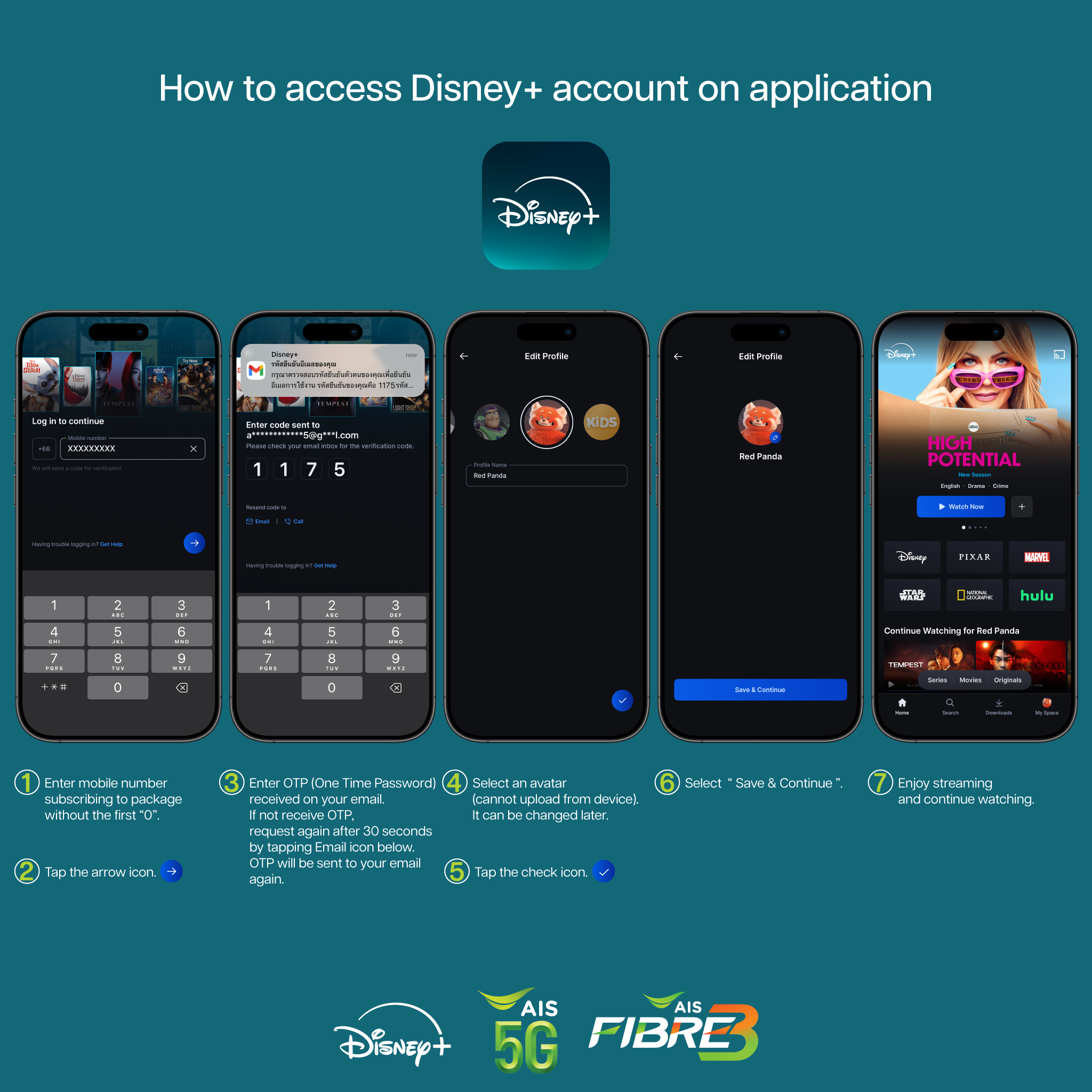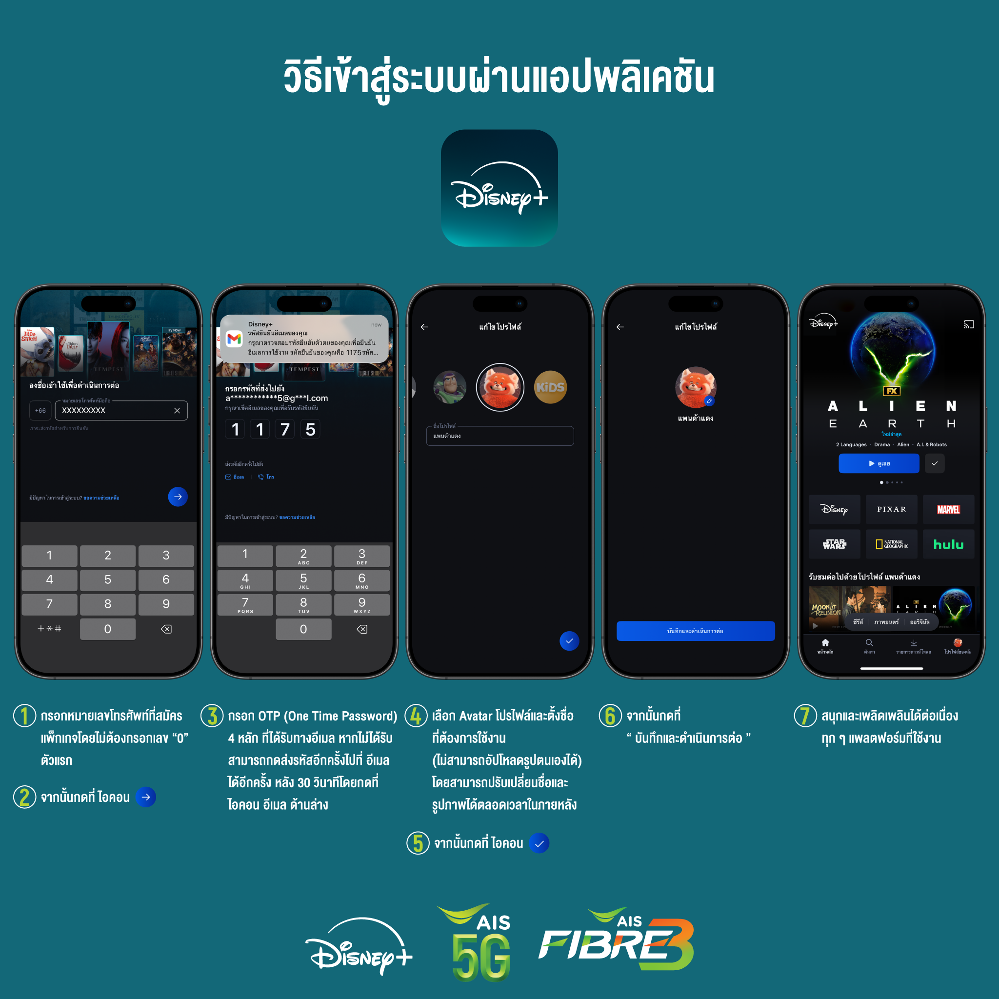 วิธีการเข้าใช้งาน Disney+ ครั้งต่อไป (ในกรณีที่เคยใช้เบอร์โทรศัพท์เอไอเอส log-in แล้ว จะเข้ารับชมได้อัตโนมัติ ไม่ต้อง log-in อีก*)