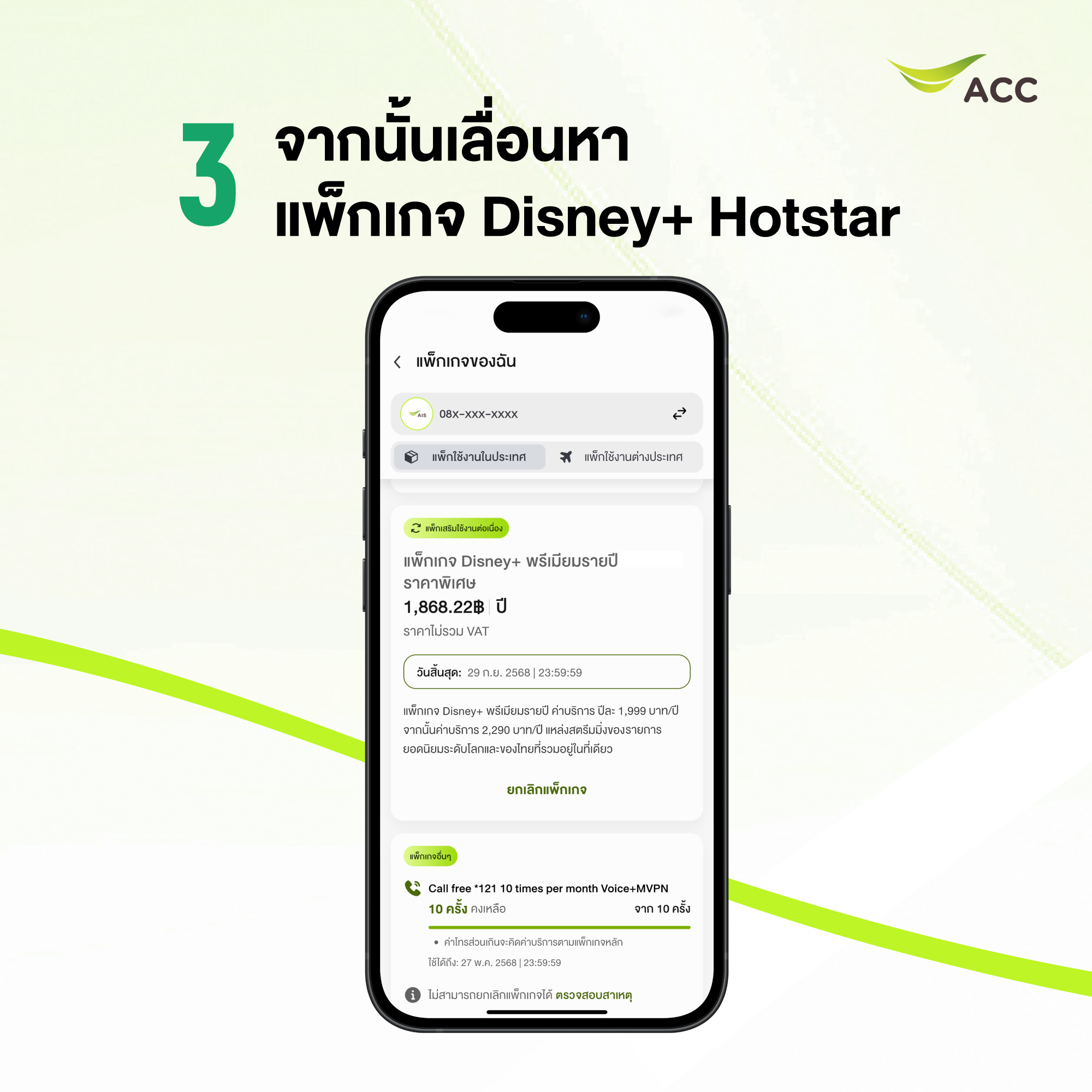 วิธีการยกเลิกแพ็กเกจเสริม Disney+ ผ่าน myAIS