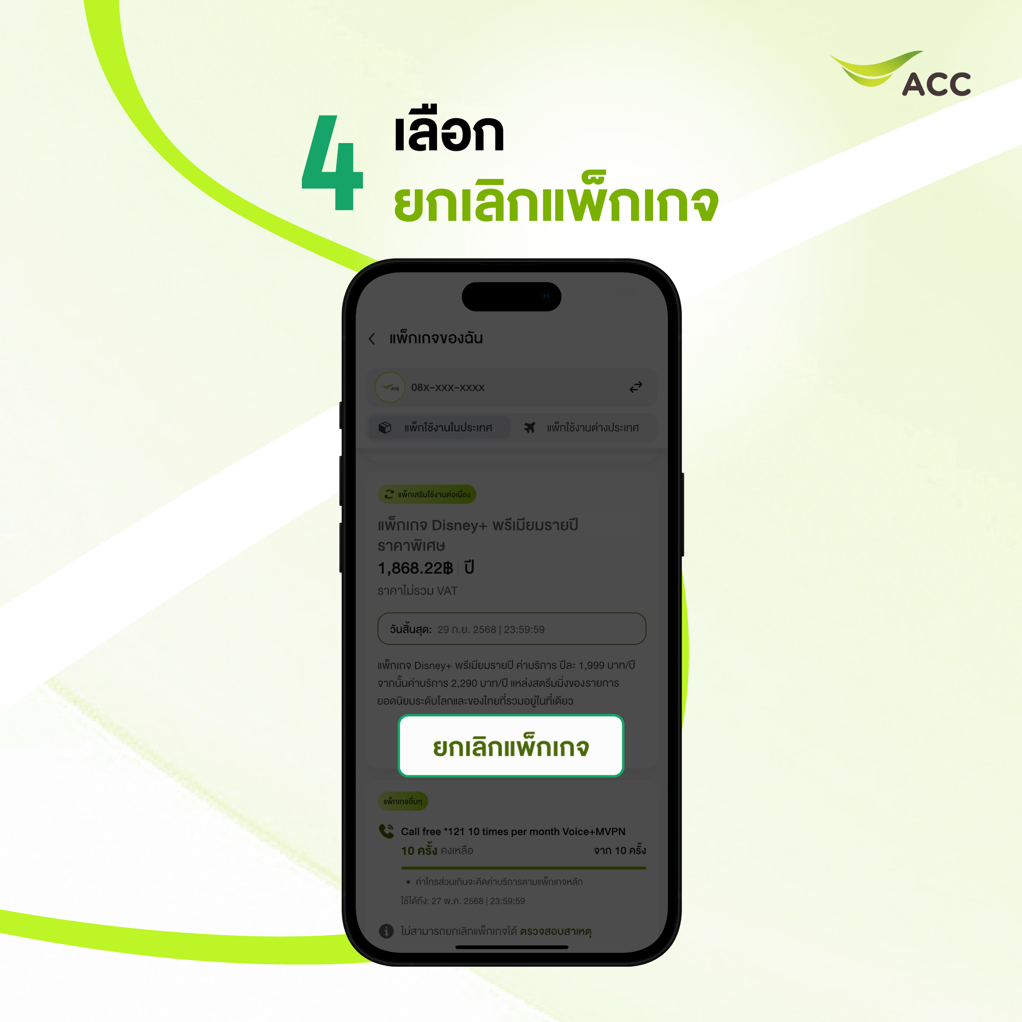 วิธียกเลิกแพ็กเกจเสริม Disney+ ผ่าน แอป myAIS
