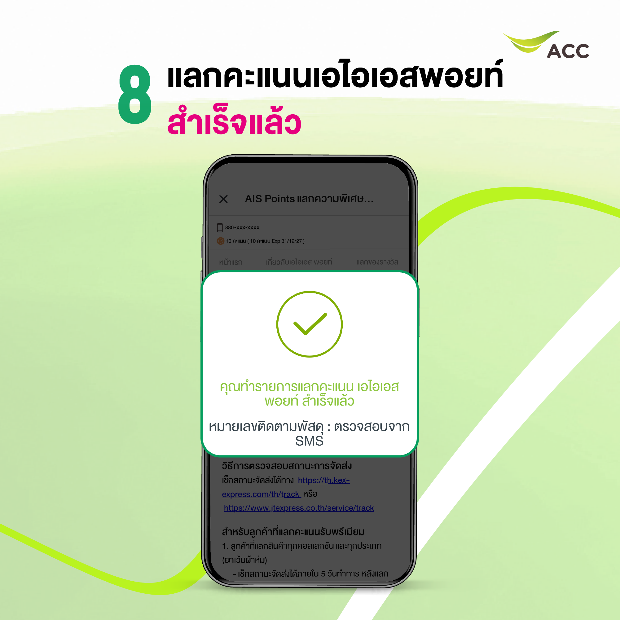 8. คุณทำรายการแลกคะแนนเอไอเอสพอยท์ สำเร็จแล้ว