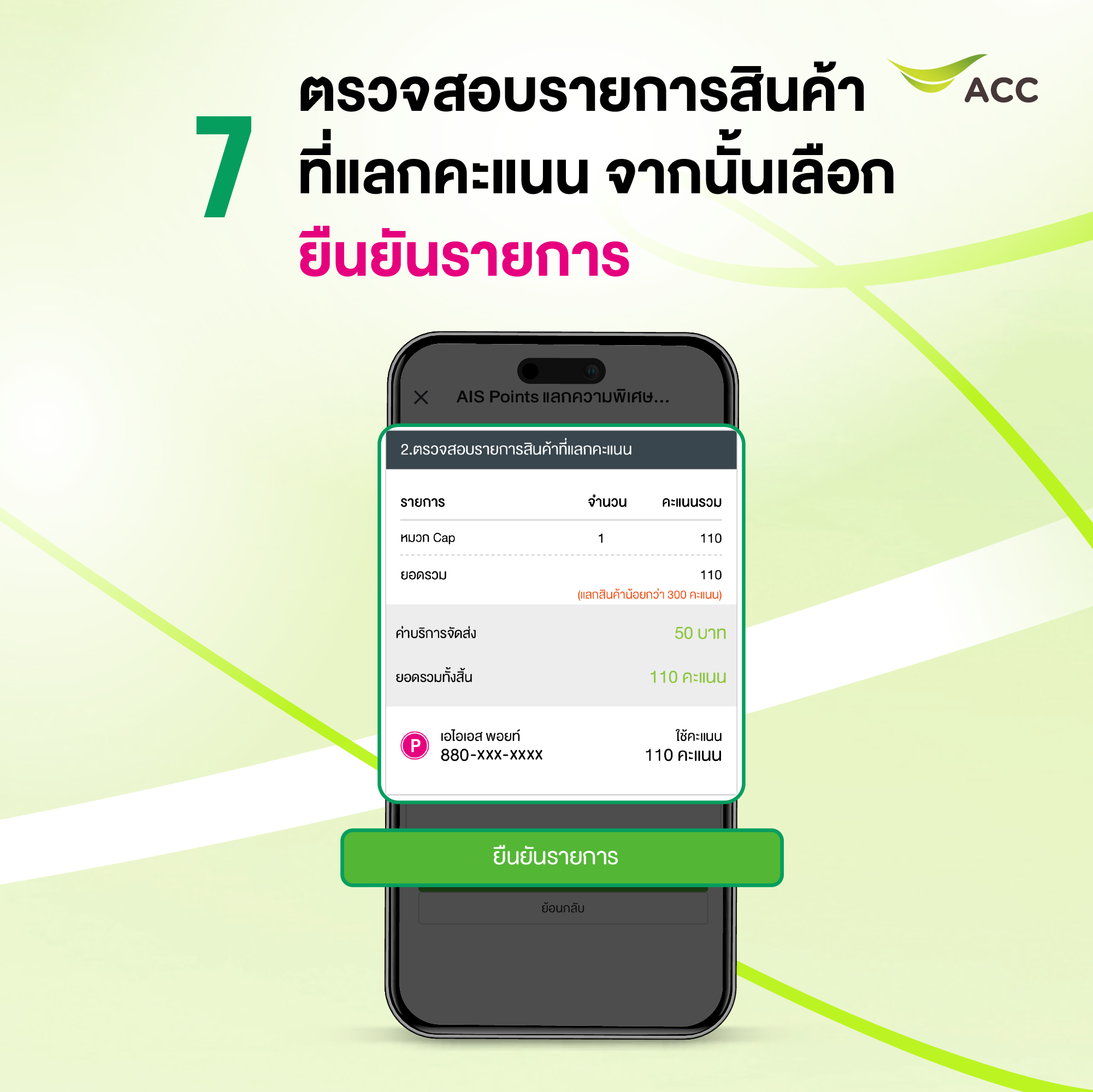 7. ตรวจสอบรายการสินค้าที่แลกคะแนน จากนั้นเลือก ยืนยันรายการ