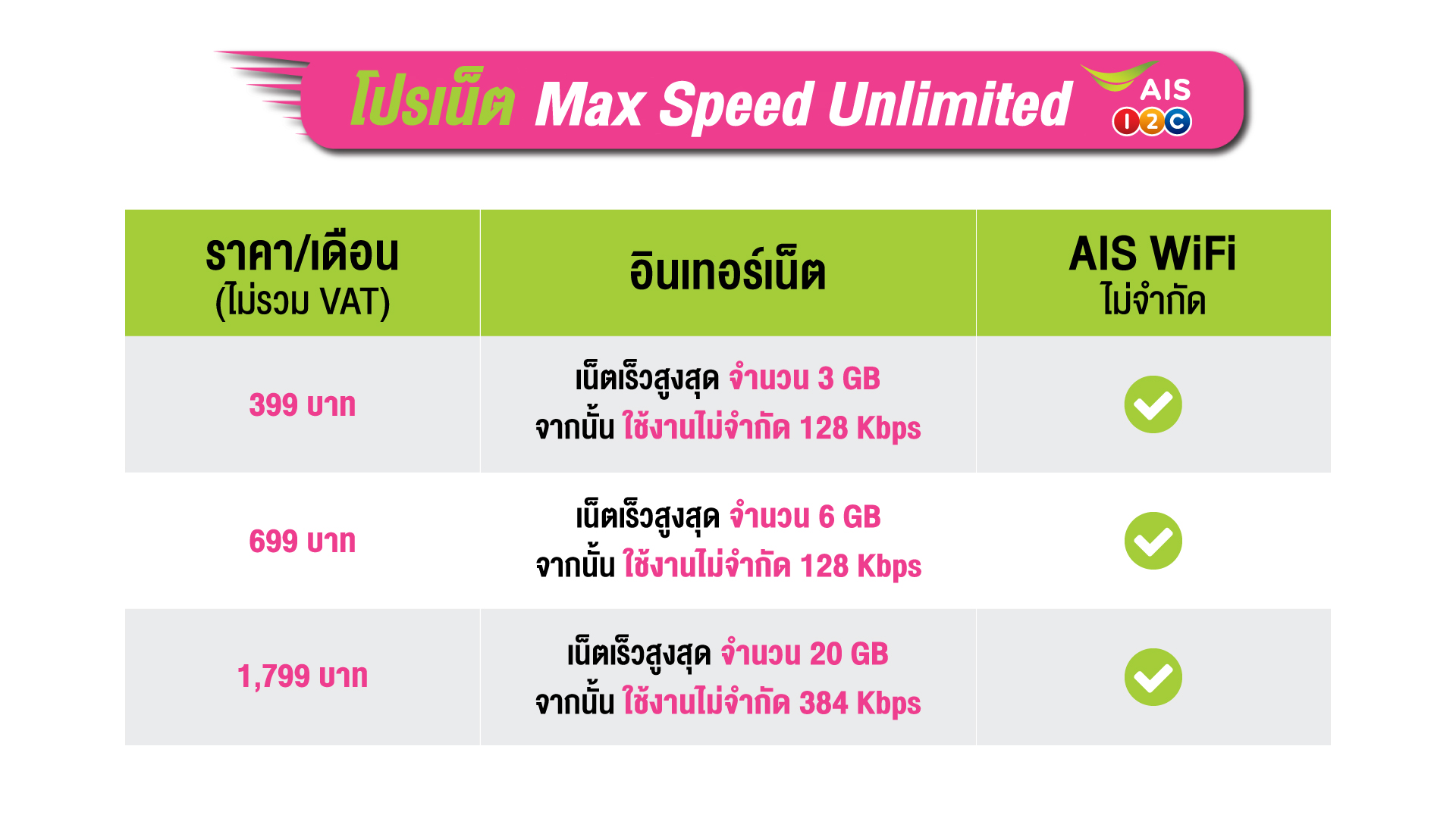โปรเน็ต เหมาเหมา Max Speed Unlimited 1,799 บาท สมัครคลิก