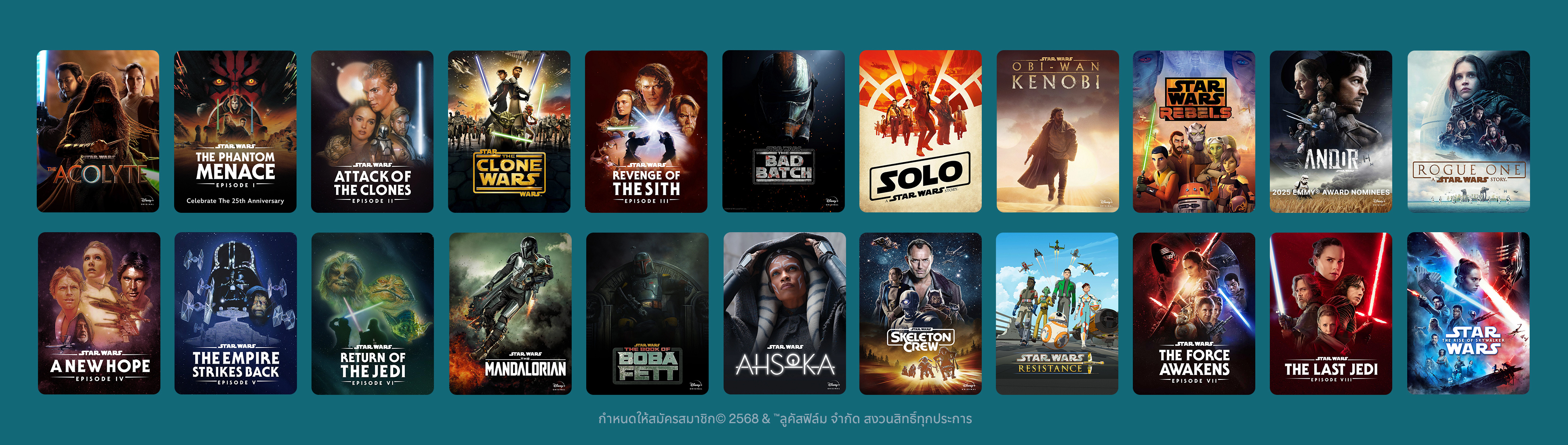 เราได้รวบรวมคอนเทนต์ STAR WARS ต่าง ๆ มีทั้งภาพยนตร์, แอนิเมชัน รวมถึง Disney+ Originals