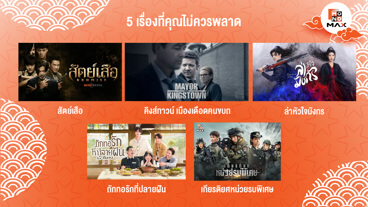 5 เรื่องที่ไม่ควรพลาด MONOMAX: สัตย์เสือ, คิงส์ทาวน์ เมืองเดือดคนขบถ, ล่าหัวใจมังกร, ถักทอรักที่ปลายฝัน, เกียรติยศหน่วยรบพิเศษ