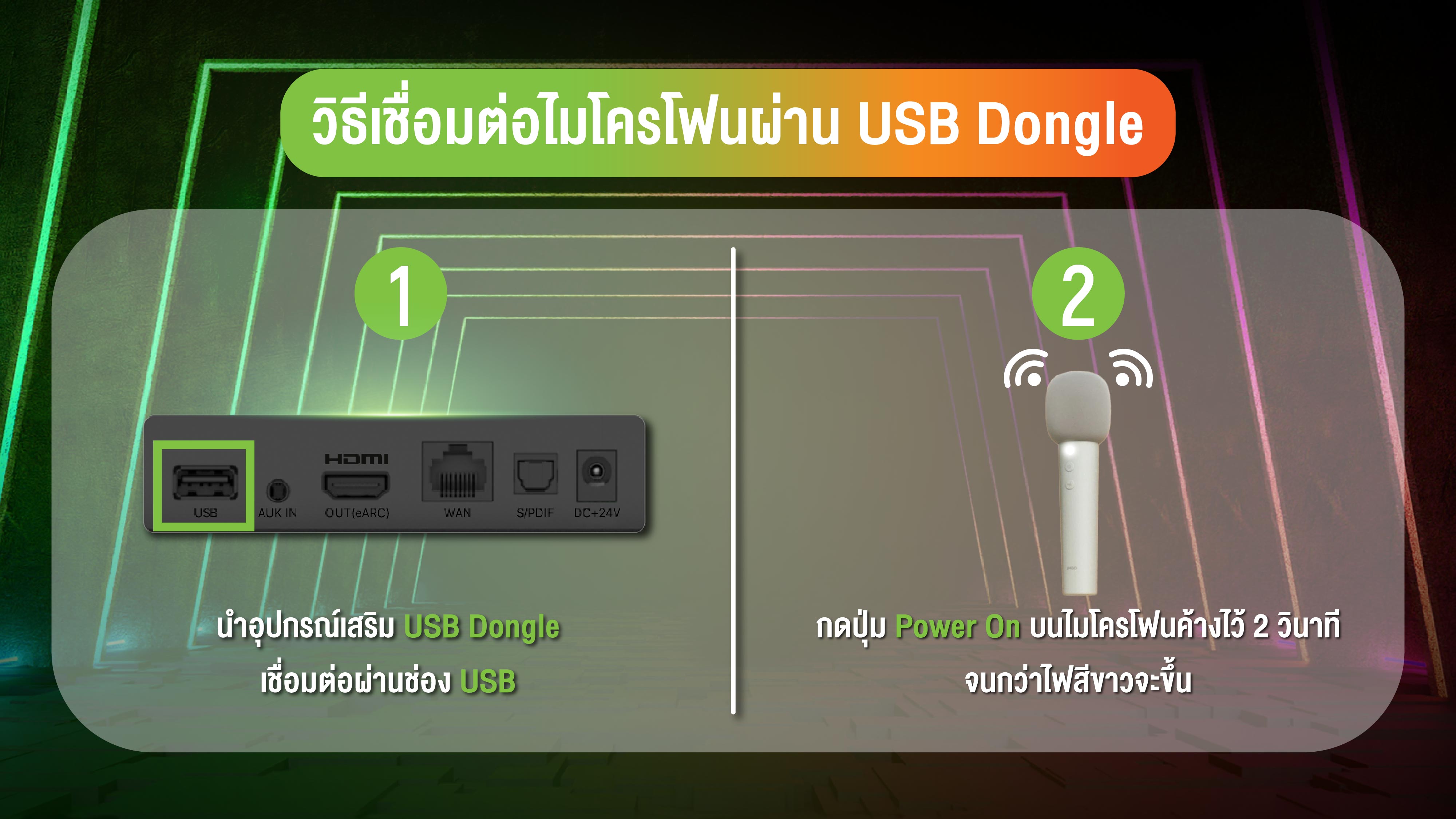 วิธีเชื่อมต่ออุปกรณ์ไมโครโฟน บน Smart Soundbar ด้วย USB Dongle