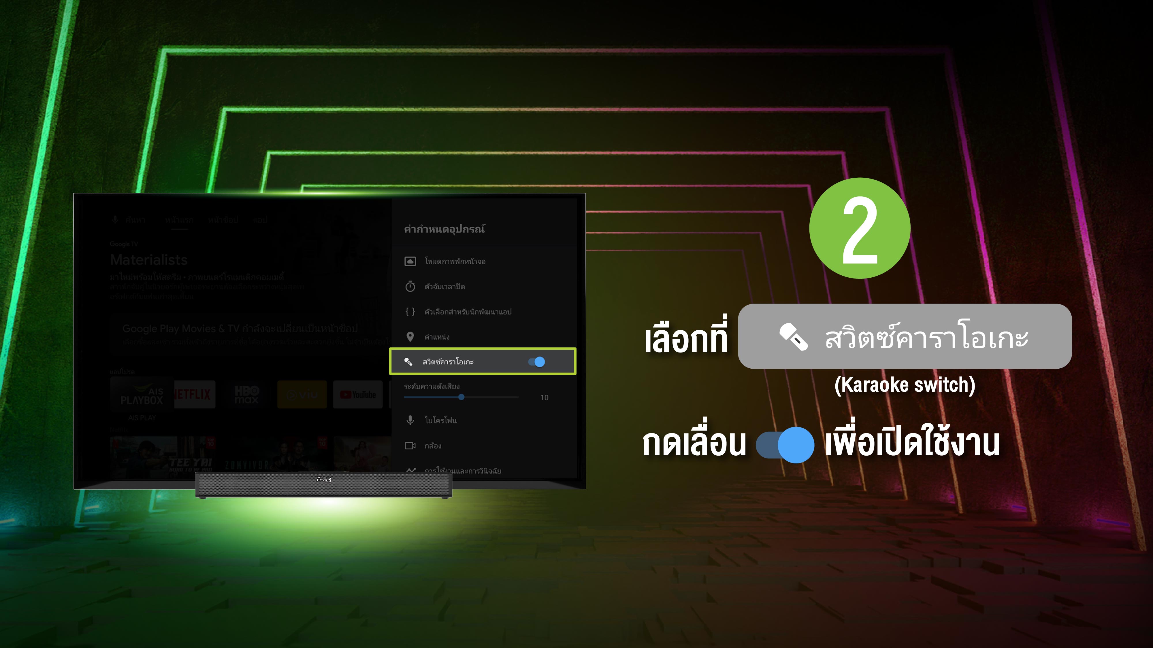 2. เลือกที่ สวิตซ์คาราโอเกะ(Karaoke switch) จากนั้นกด ไอคอนเลื่อนเปิด เพื่อใช้งาน
