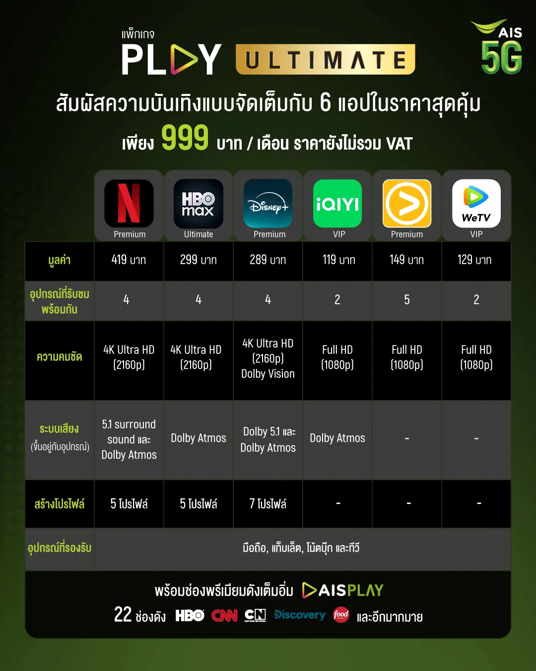 รีวิวความคุ้มค่า แพ็กเกจ AIS PLAY Ultimate รู้ก่อน คุ้มก่อน แพ็กเกจสำหรับลูกค้ารายเดือน 999 บาท/เดือน
