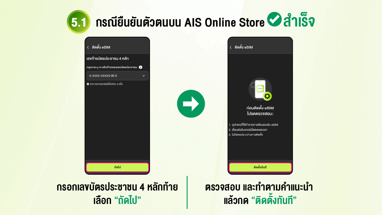 5.1 กรณียืนยันตัวตนบน AIS Online Store “สำเร็จ”