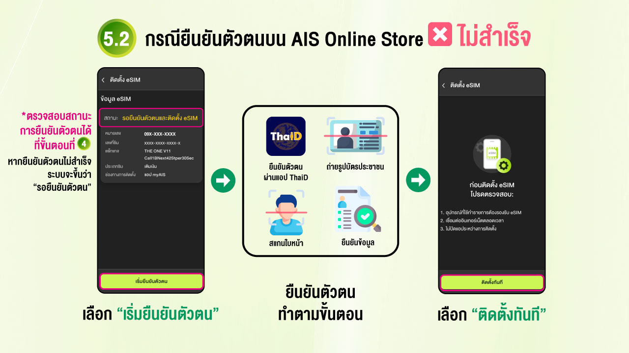 5.2 กรณียืนยันตัวตนบน AIS Online Store “ไม่สำเร็จ”