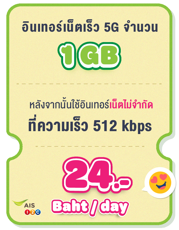 แพ็กเกจเน็ต 5G ค่าบริการ 24 บาท สมัครแพ็กเกจ