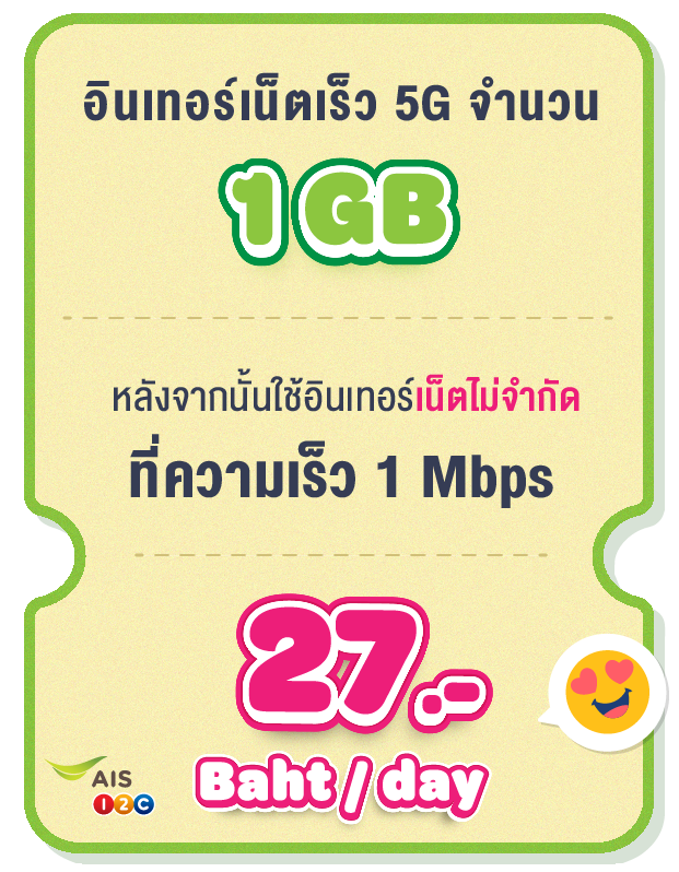 แพ็กเกจเน็ต 5G ค่าบริการ 27 บาท สมัครแพ็กเกจ