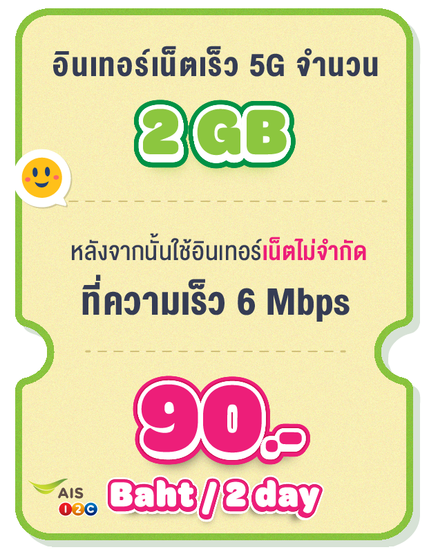 • ใช้งานอินเทอร์เน็ต 5G เป็นจำนวน 1GB หลังจากนั้นใช้งานได้ไม่จำกัดที่ความเร็ว 2 Mbps