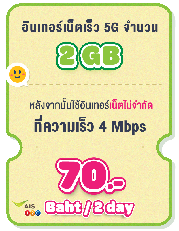 • ใช้งานอินเทอร์เน็ต 5G/4G เป็นจำนวน 2 GB หลังจากนั้นใช้งานได้ไม่จำกัดที่ความเร็ว 4 Mbps
