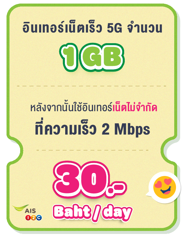 แพ็กเกจเน็ต 5G ค่าบริการ 30 บาท สมัครแพ็กเกจ