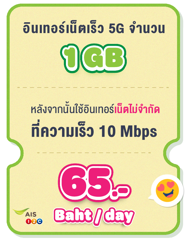 • ใช้งานอินเทอร์เน็ต 5G/4G เป็นจำนวน 1 GB หลังจากนั้นใช้งานได้ไม่จำกัดที่ความเร็ว 1 Mbps