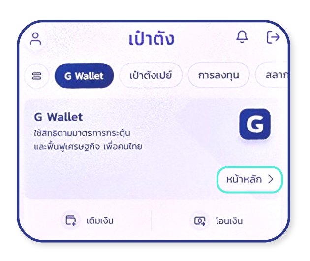 1. ที่หน้าแรก ที่ Tab G-Wallet ไปที่ “หน้าหลัก”