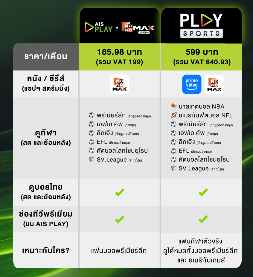 เปรียบเทียบแพ็กเกจ AIS PLAY สำหรับคอกีฬา