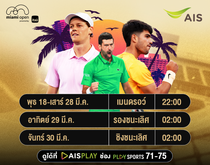 เสิร์ฟความมันกันแบบ Back to Back กับรายการระดับ Master 1000 รายการที่ 2 ของปี ในศึก Miami Open รายการ Sunshine Double