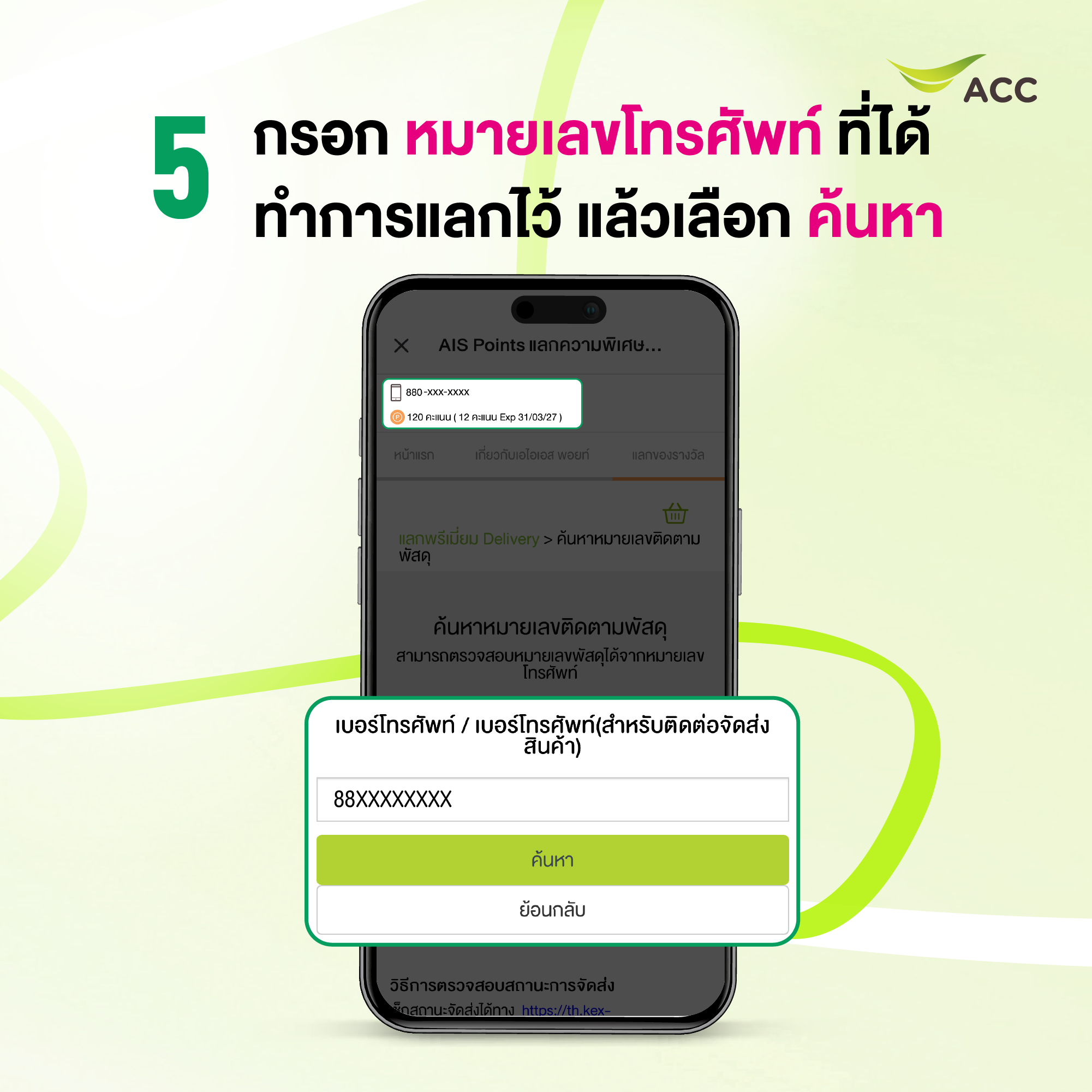 5. กรอกหมายเลขโทรศัพท์ที่ได้ทำการแลกไว้ แล้วเลือกค้นหา