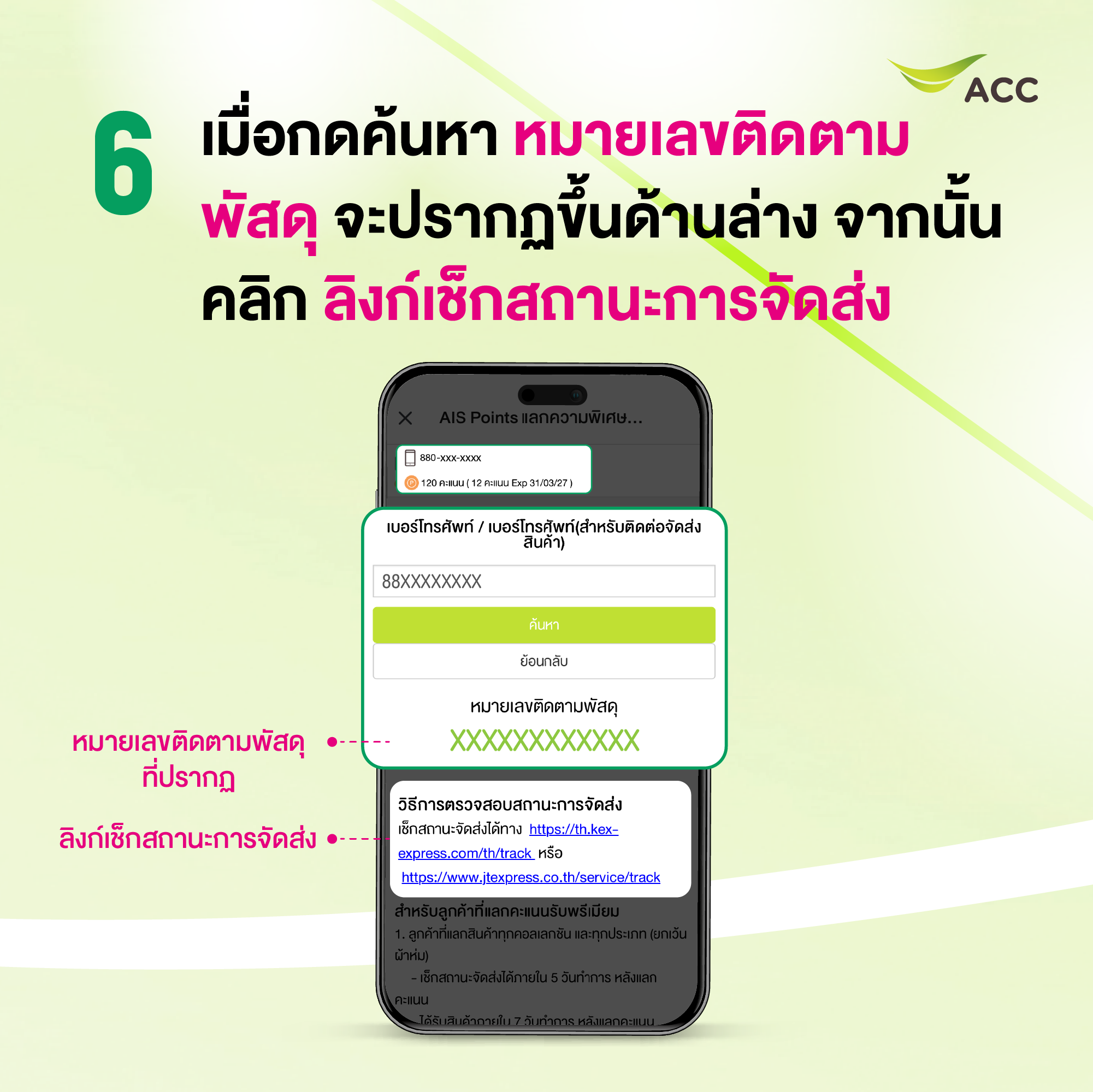 ติดตามพัสดุของพรีเมี่ยมอุ่นใจคอลเลคชั่น ผ่าน myAIS