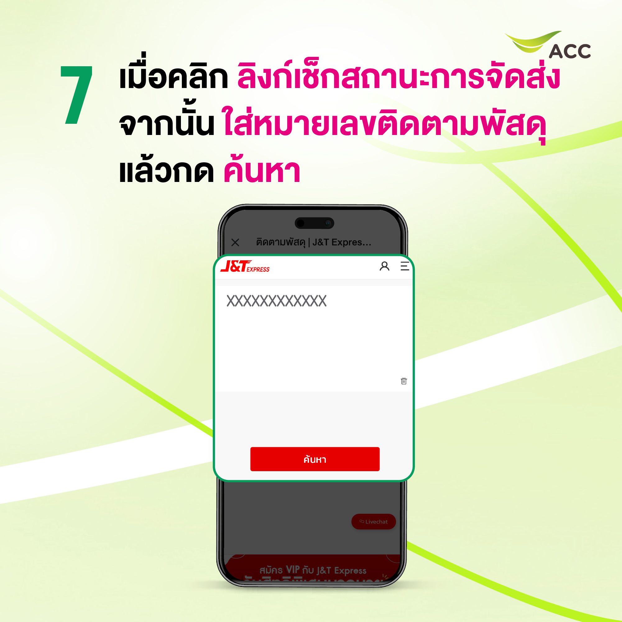 7. เมื่อคลิก ลิงก์เช็กสถานะการจัดส่ง จากนั้น ใส่หมายเลขติดตามพัสดุ แล้วกด ค้นหา